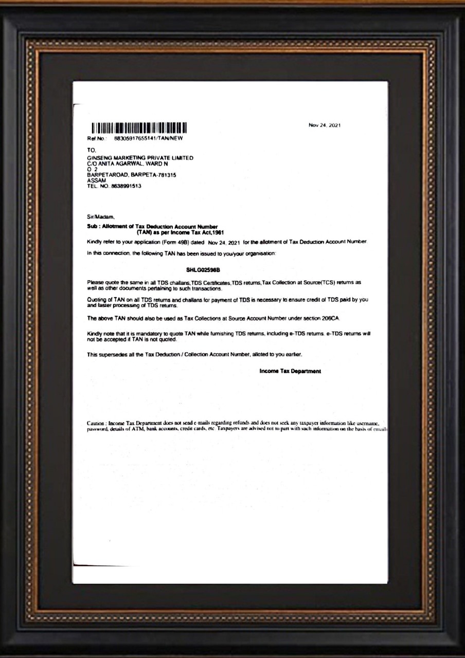 TAN Certificate